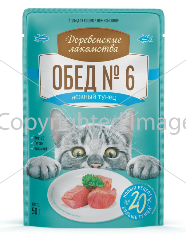 Обед №6 Деревенские лакомства Нежный тунец, Корм для взрослых кошек , пауч 50 г
