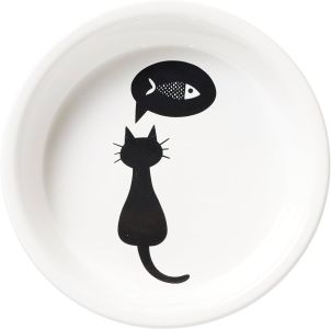 Белоснежная керамическая миска Trixie «Кошка» с изображением черной кошки, мечтающей о рыбке, станет отличным дополнением к интерьеру вашей кухни. Не броская, выдержанная в нескольких тонах, миска изготовлена из качественной керамики. Диаметр миски составляет 13 см, объем до 0,25 л. Имеет гладкое покрытие, легко моется, не царапается. Благодаря устойчивой форме, кошка не сможет перевернуть миску и рассыпать корм.