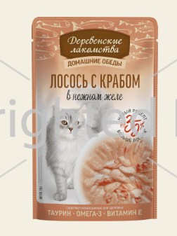 Влажный корм для кошек "Деревенские лакомства" Лосось с крабом в нежном желе, 70 г Влажный корм для кошек "Деревенские лакомства" Лосось с крабом в нежном желе, 70 г