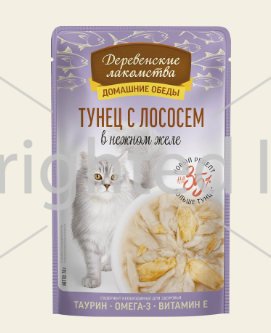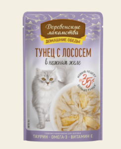 Влажный корм для кошек "Деревенские лакомства" Тунец с лососем в нежном желе, 70 г