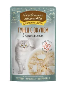 Влажный корм для кошек "Деревенские лакомства" Тунец с окунем в нежном желе, 70 гр "Деревенские лакомства" Тунец с окунем в нежном желе, 70 гр