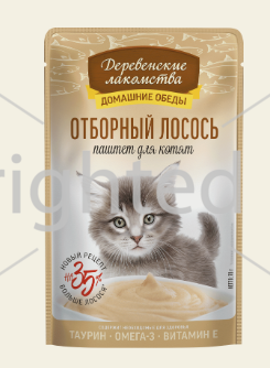 Влажный корм для котят “Деревенские лакомства” Отборный лосось паштет 70 г — это нежный и питательный паштет, специально созданный для растущих котят. В составе используется отборный лосось , богатый омега-3 жирными кислотами,...