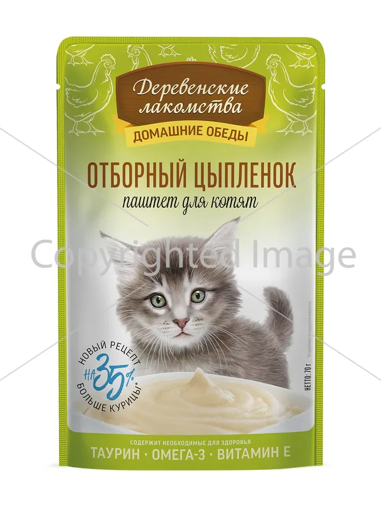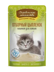 Влажный корм для котят "Деревенские лакомства" Отборный цыпленок, Паштет, 70 гр "Деревенские лакомства" Отборный цыпленок, Паштет, 70 гр